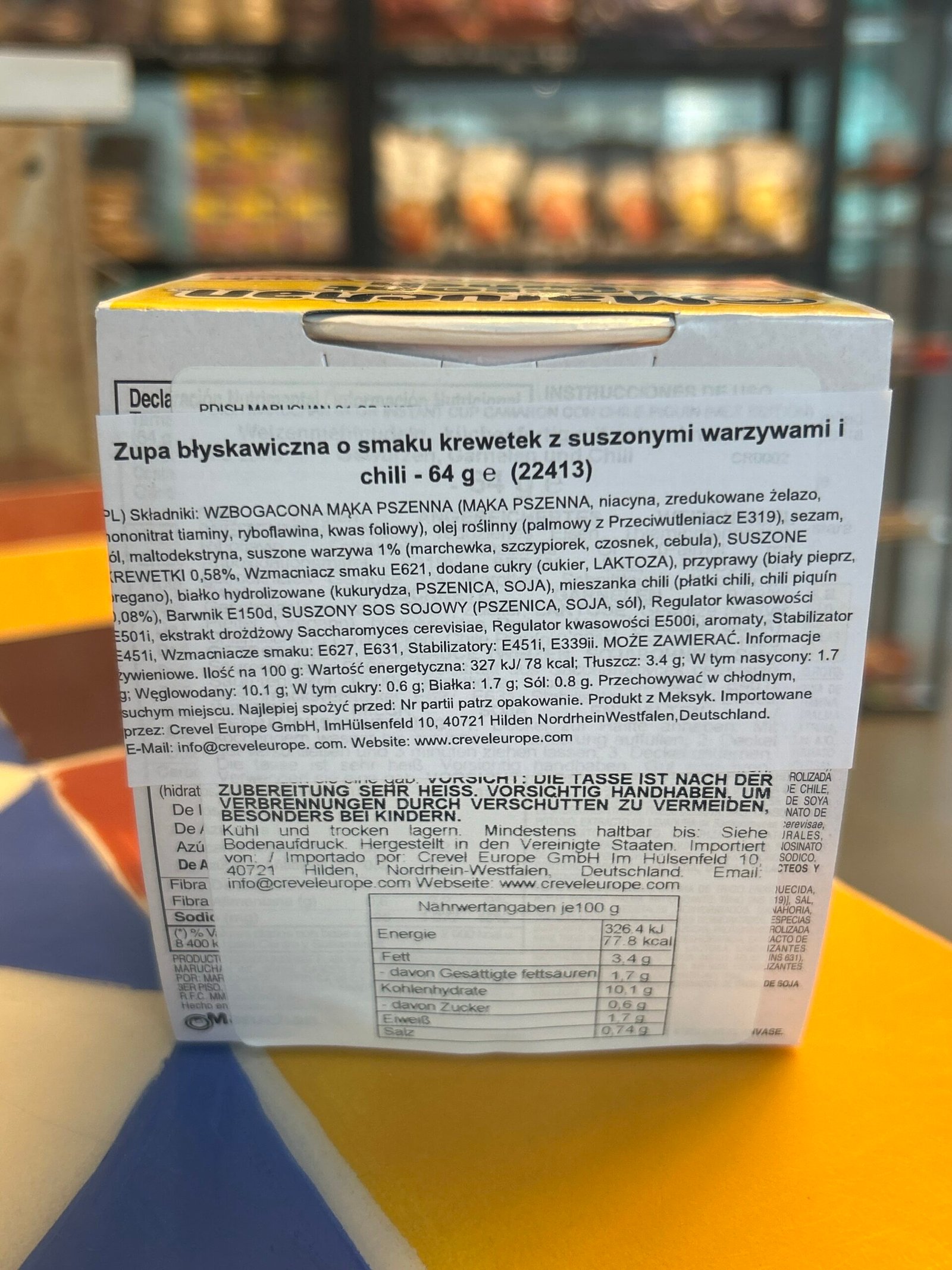 Danie błyskawiczne o smaku makaronu z krewetkami i papryczką Piquin, Maruchan, masa produktu 64g